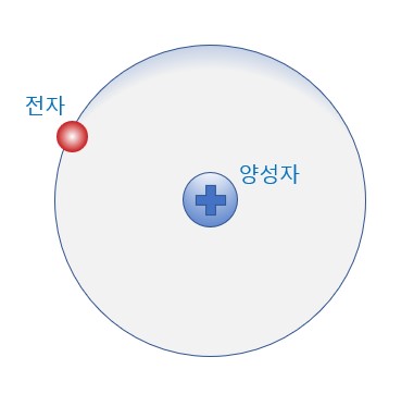 수소 – 가장 기본적인 구조를 가진 원소, 원자번호 1번, 양성자 한 개와 전자 한 개로 구성되어 있음(원자핵이 양성자 하나로 구성되어 있음)