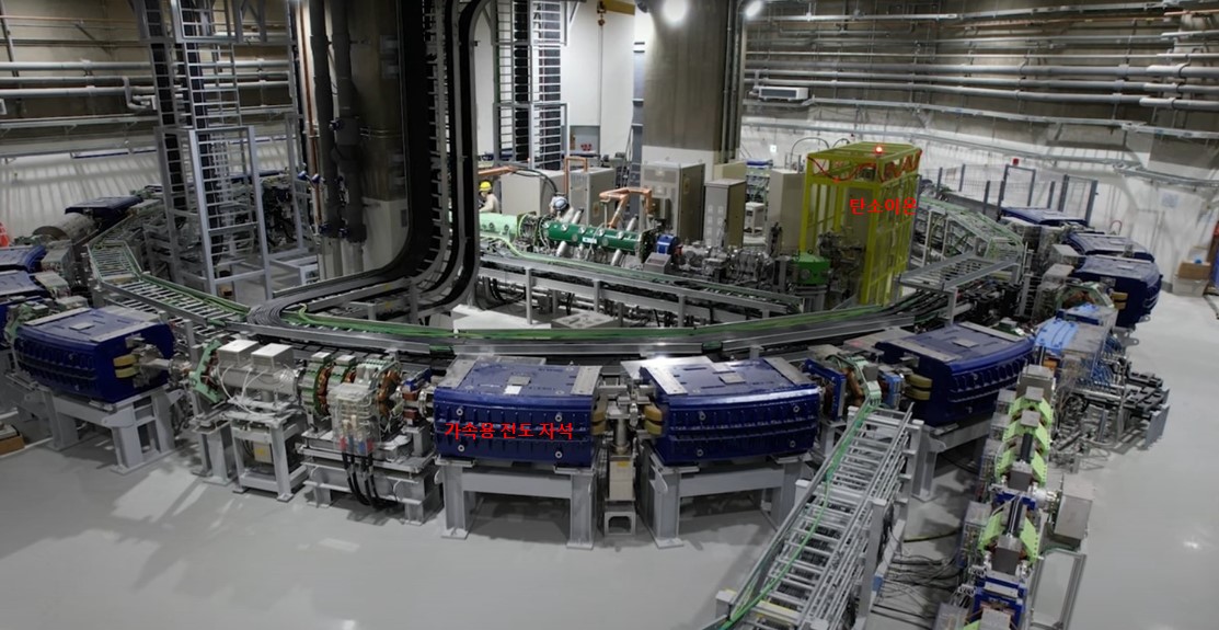 치료용 중입자 탄소는 선형가속기(싱크로트론,Synchrotron)에서 1차 가속 후, 원형 가속기에서 2차 가속을 합니다.