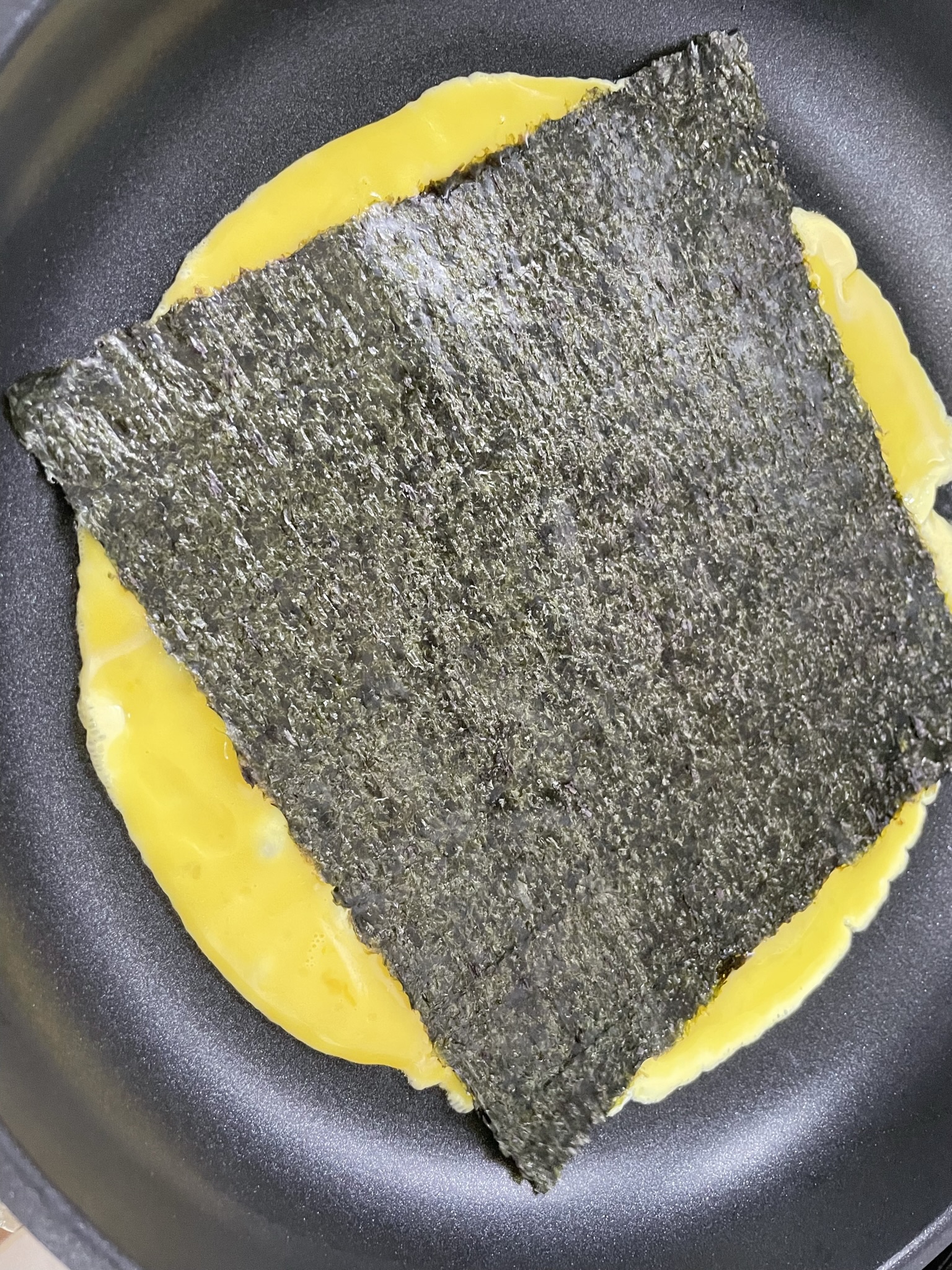 김밥용 김 1장(김밥용 김이 잘되요. 파래김 같은 건 칼로 잘랐을 때 김이 퍼질 수 있어요)