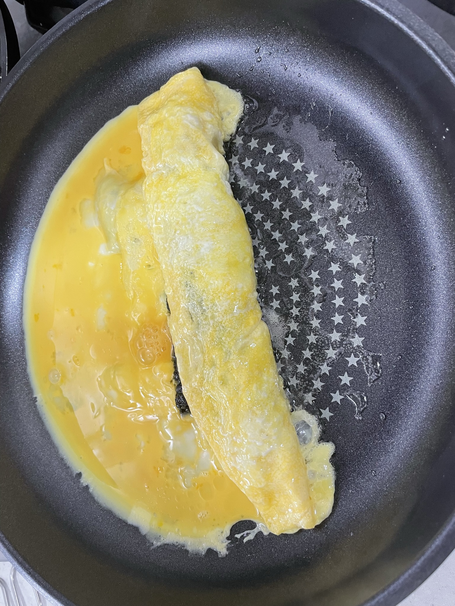 8. 1/3정도 말았으면 계란을 빈 공간 쪽으로 밀어줍니다.