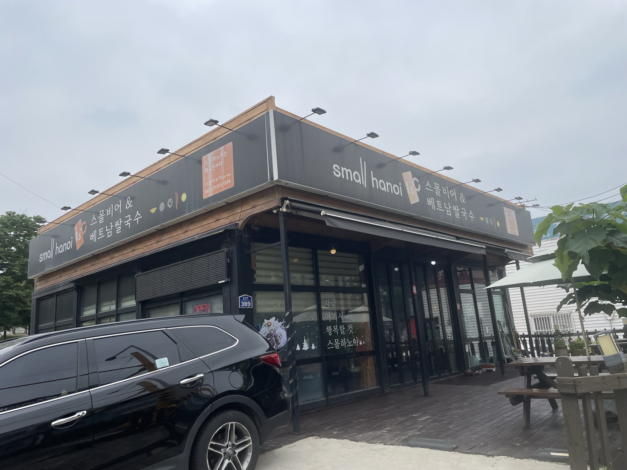실내는 약 55명 정도 식사할 수 있는 공간이고요. 야외에도 테이블이 3개 정도 있어요.