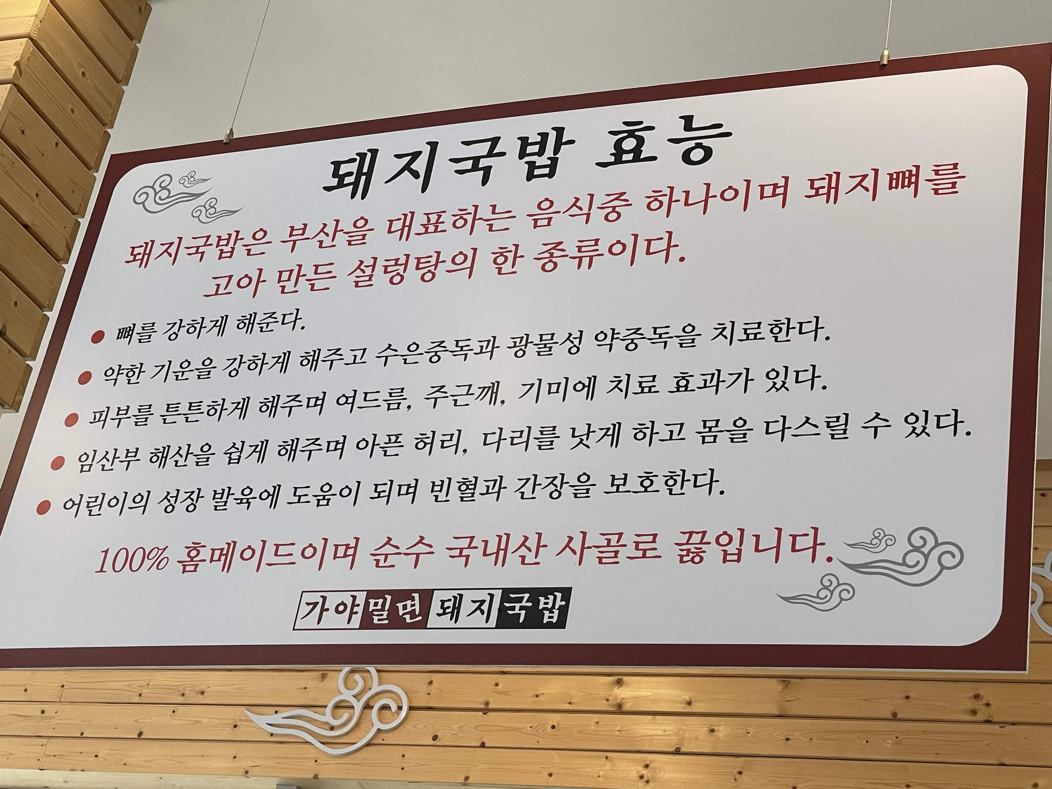 돼지국밥도 밀면과 함께 부산의 대표 음식이며 돼지의 뼈와 고기를 푹 삶은 국물에 돼지고기가 듬뿍 들어간 국밥입니다.