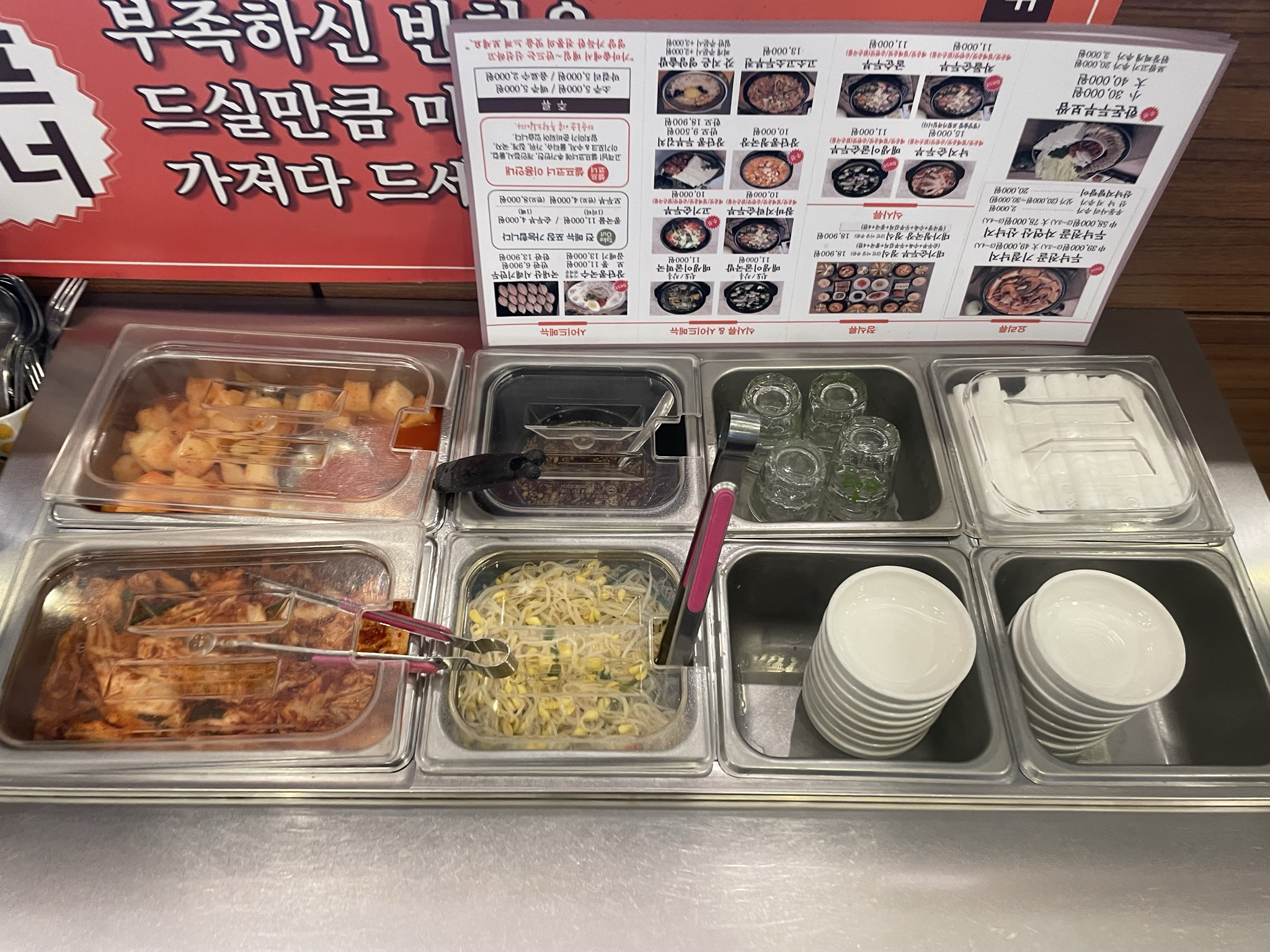 부족한 반찬은 셀프로 추가할 수 있어요.
