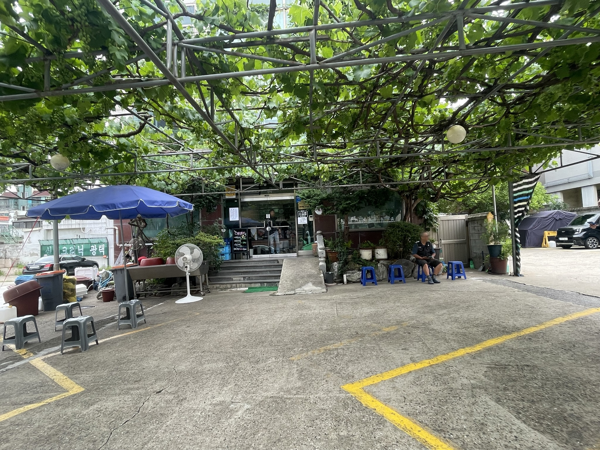 가게 입구에는 이렇게 포도나무 넝쿨로 시원한 그늘을 만들어 놓으셨네요.