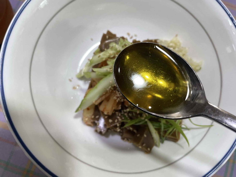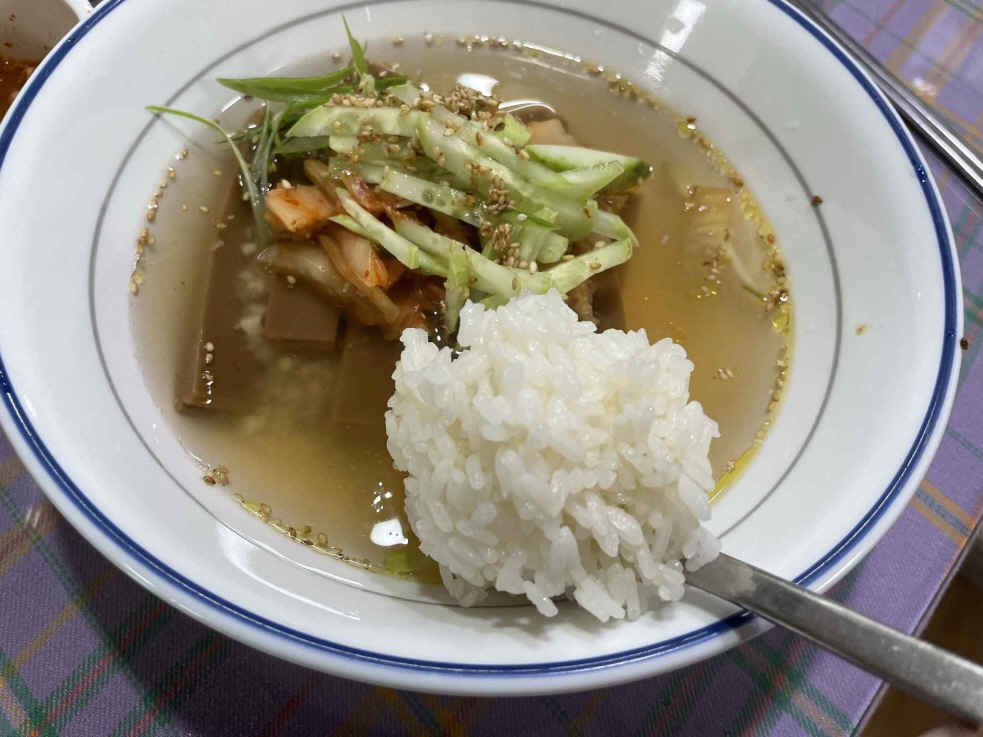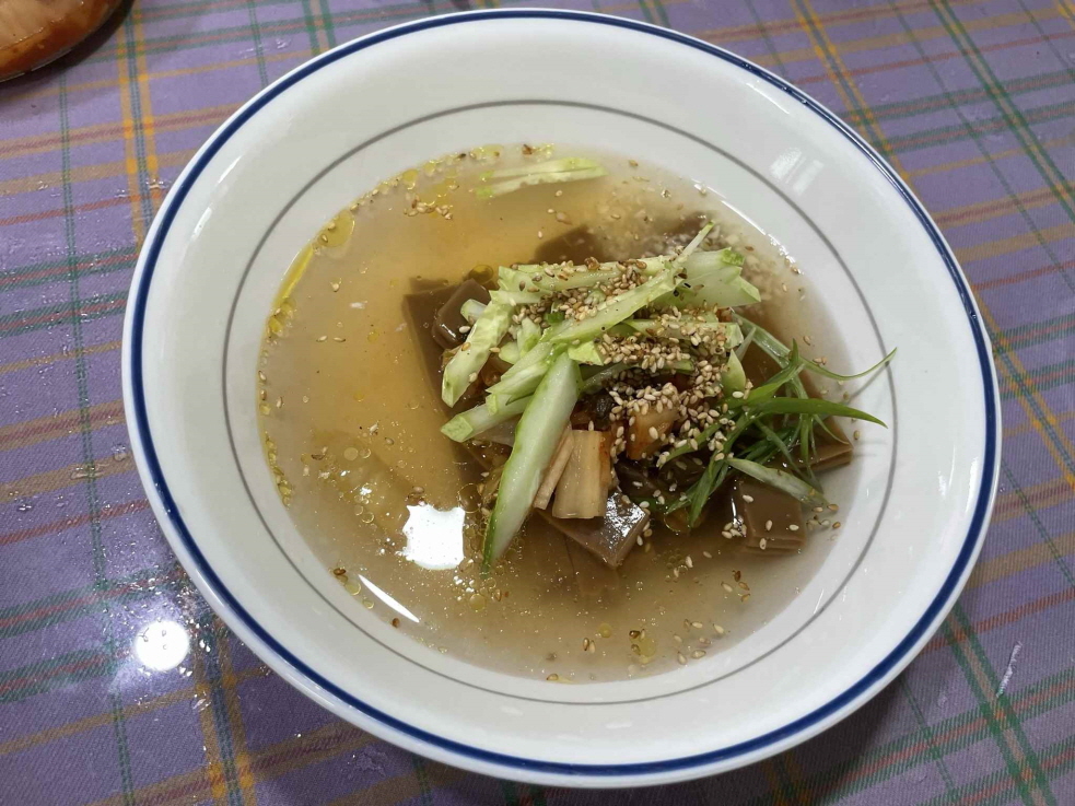 도토리묵을 얇게 썰어 시원한 육수와 함께 먹는 음식입니다.