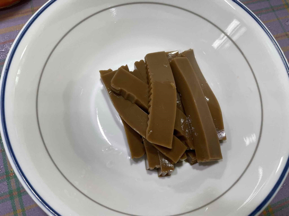 1. 도토리묵은 농협 마트에서 판매하는 제품 사용하였습니다. 농협제품이 첨가물 없고 맛있어요. 도토리묵을 물에 씻어서 얇게 썰어 준비합니다. (두께 약 1.5Cm)