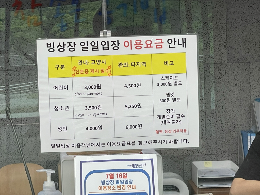 1시간 1,000(이후 30-1,000, 빙상 2시간 무료)