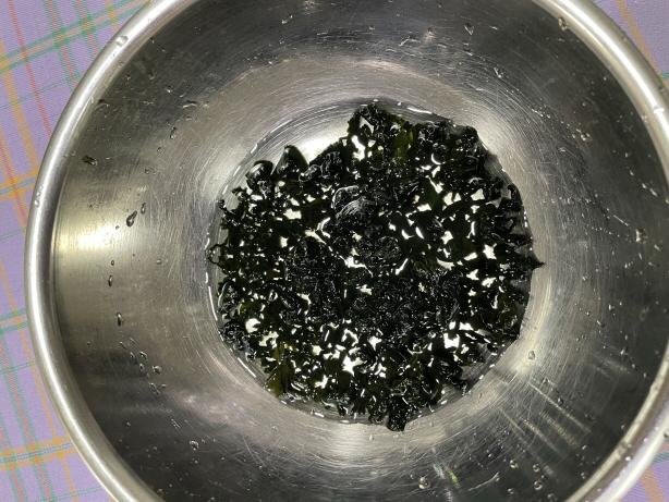 1. 건미역을 찬 물에 불립니다. 약 10분만 불려도 돼요.