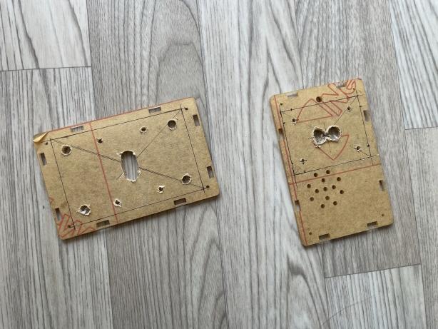 아크릴판에 잘라낼 부분과 구멍 뚫을 부분을 그려줍니다.