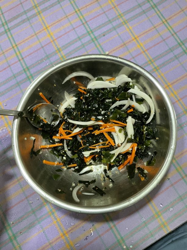 미역국 끓이려고 물에 미역 불려 놨는데 너무 많으면 미역초무침 만들어도 좋아요.
