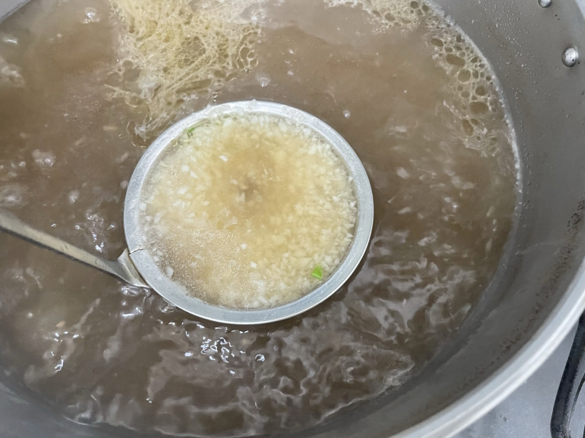 다진 마늘 끓는 국물에 헹구듯 우려내기
