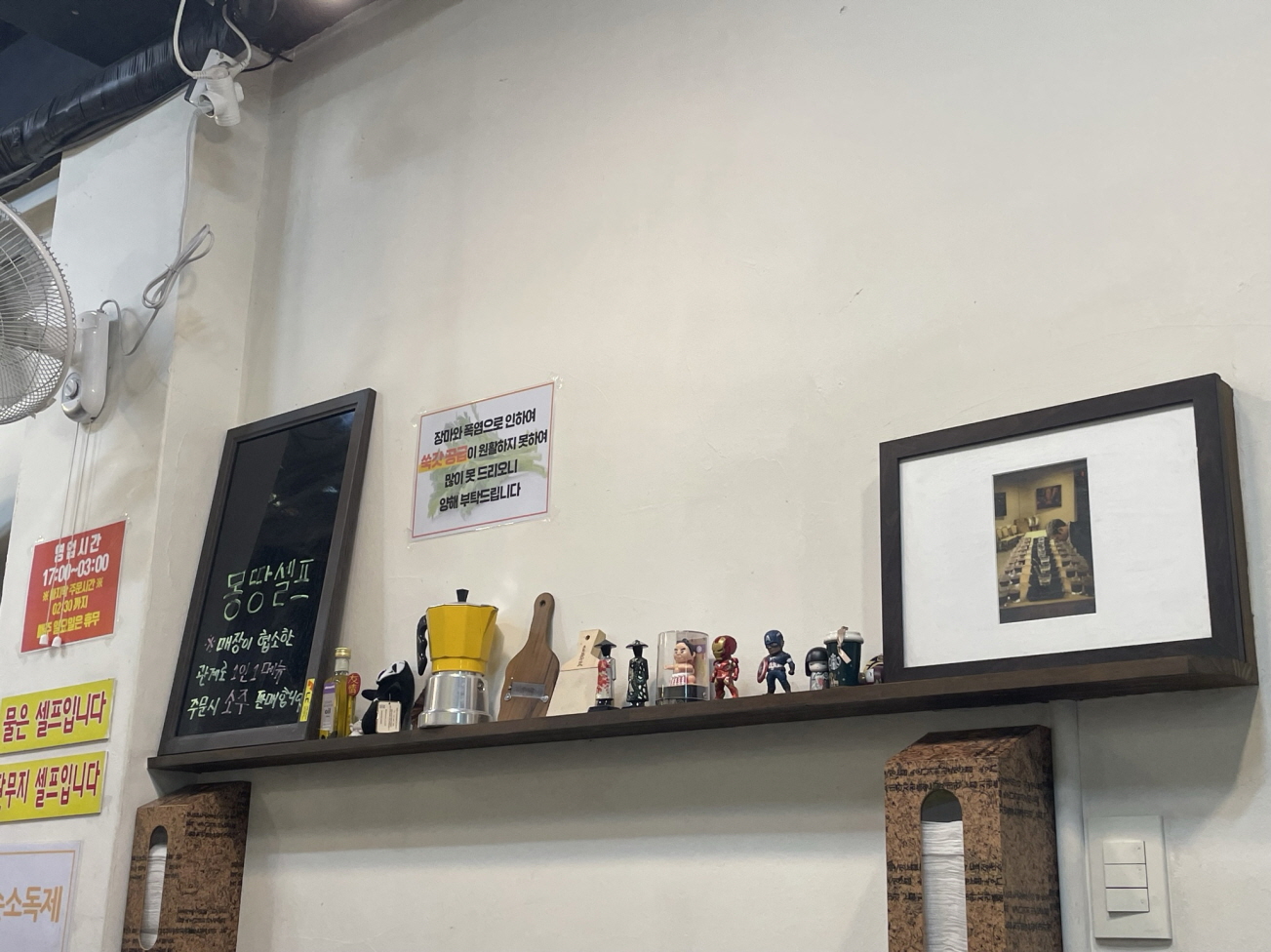 물과 반찬은 셀프이고요. 계산은 선불입니다.