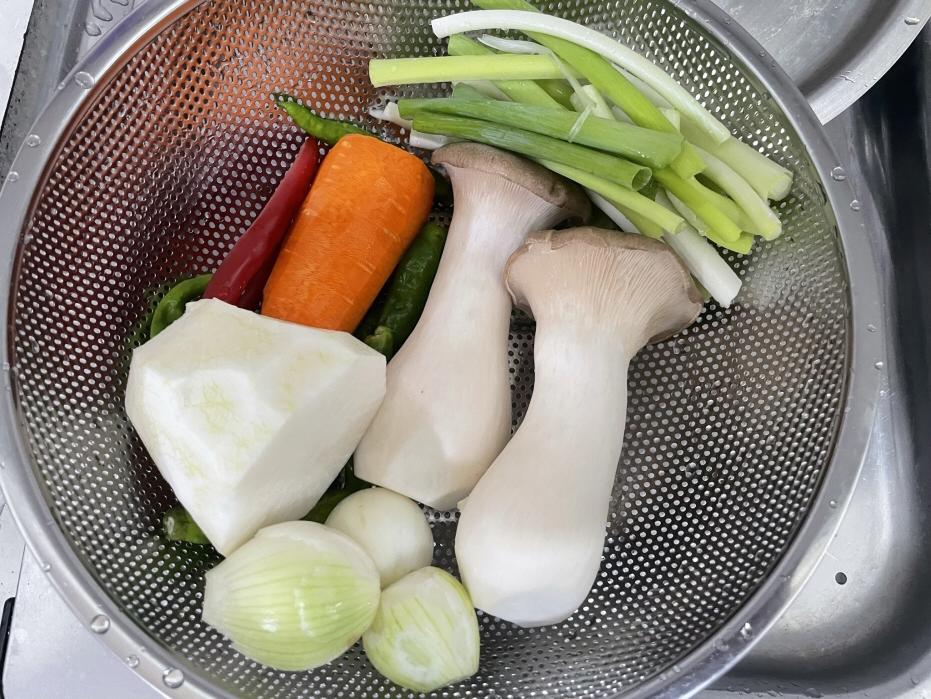 7. 고기가 쪄지는 동안 갈비찜에 들어갈 야채를 손질합니다.
