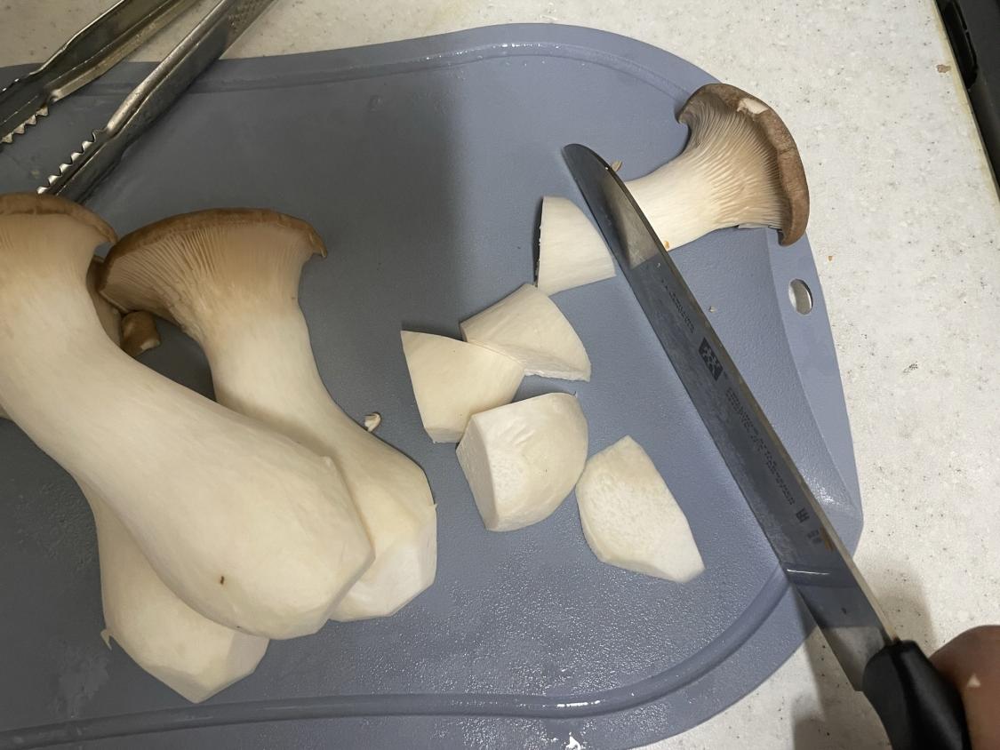 11. 표고버섯과 새송이버섯을 크게 썰어 준비합니다. 저희는 표고버섯을 잘 안 먹어서 새송이버섯만 두 개 넣었어요. ^^