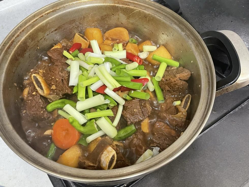 14. 대파, 홍고추, 청양고추, 꽈리고추를 넣고 잘 섞어주면서 1~2분간 끓입니다.