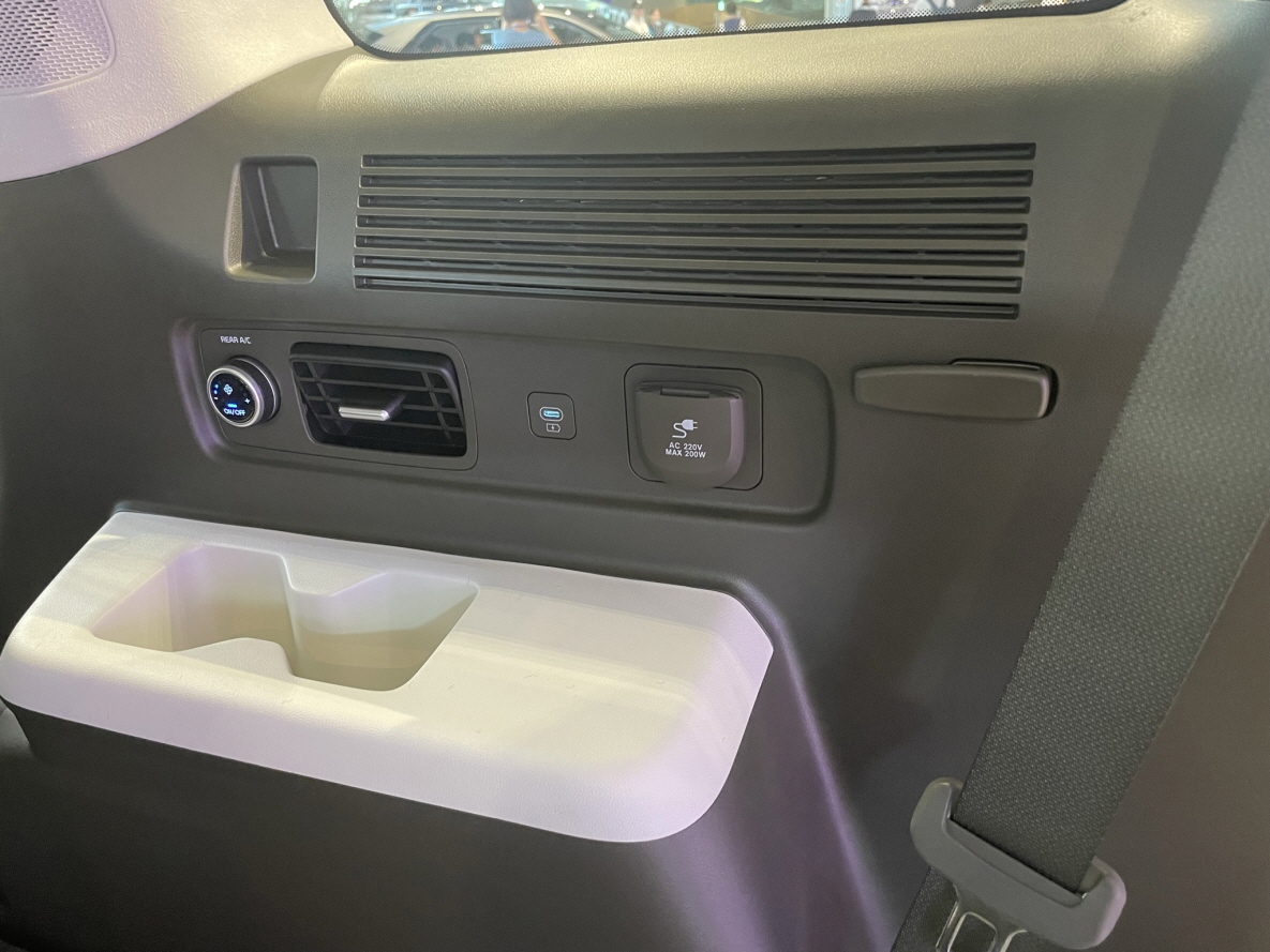 3열 좌석 편의 장치입니다. 220V(200W)인버터 전원과 usb-C충전 포트, 12V 전원 포트 등 편의장치를 제공합니다. 3열 에어컨으로 별도의 풍량을 조절할 수 있습니다.