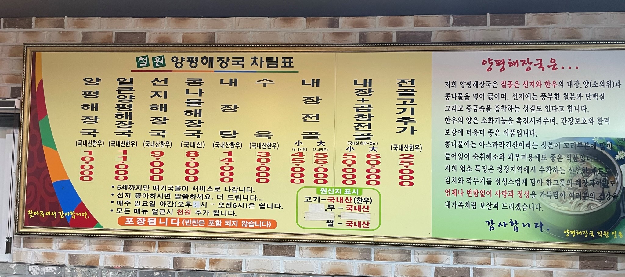 고양시 일산동구 장항동에 있는 철원양평해장국을 소개합니다.