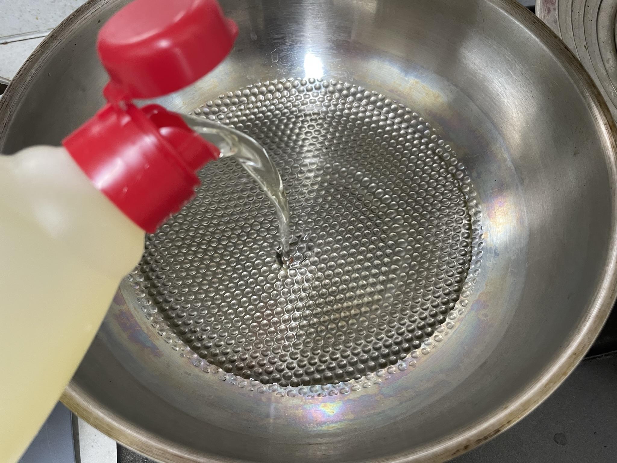 6. 팬에 기름을 부은 후 가열합니다.