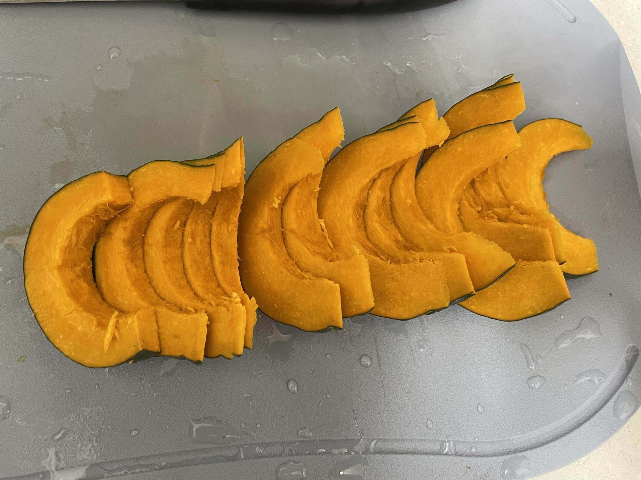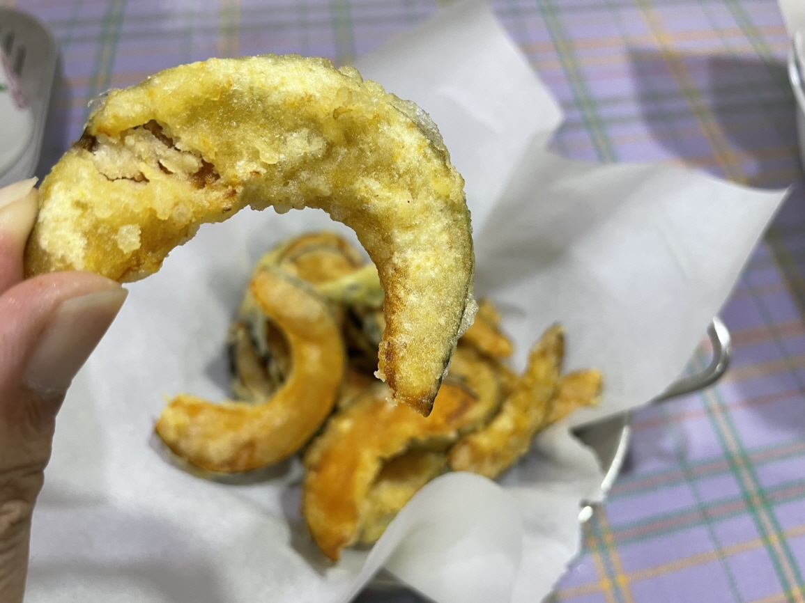 미니단호박은 쪄서 먹어도 되지만 얇게 잘라서 튀김을 해도 정말 맛있어요.