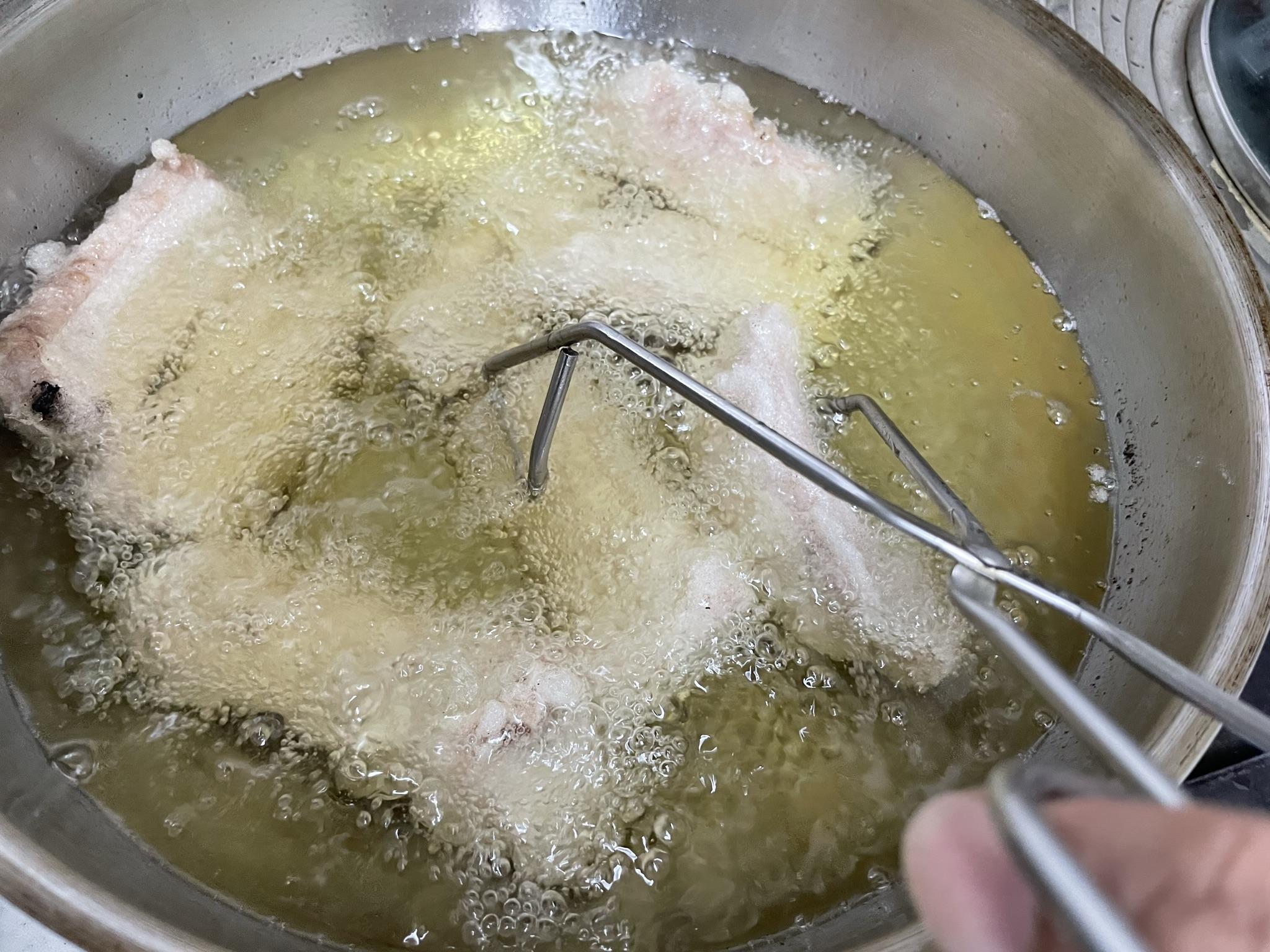 돼지등갈비는 쪄서도 먹고 구워서 먹어도 맛있는데요. 기름에 튀겨도 정말 맛있는 것 같아요.