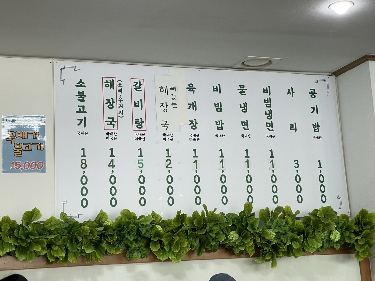 메인메뉴는 해장국(소뼈,우거지), 갈비탕으로 보이고요.