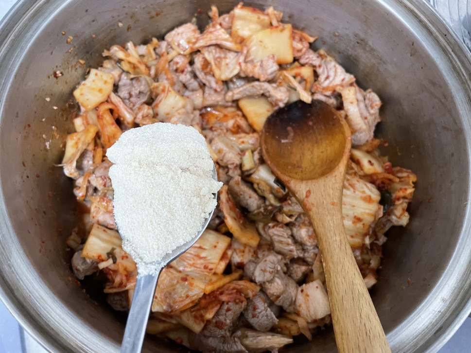 10. 식초를 2큰술 넣으면 김치찌개 맛이 살아요.