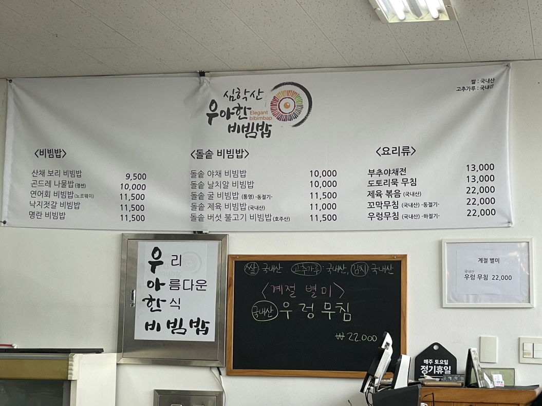 비빔밥뿐 아니라 요리 메뉴도 있어서 심학산 오르고 내려올 때 간단하게 술 한잔하기 좋을 것 같네요.