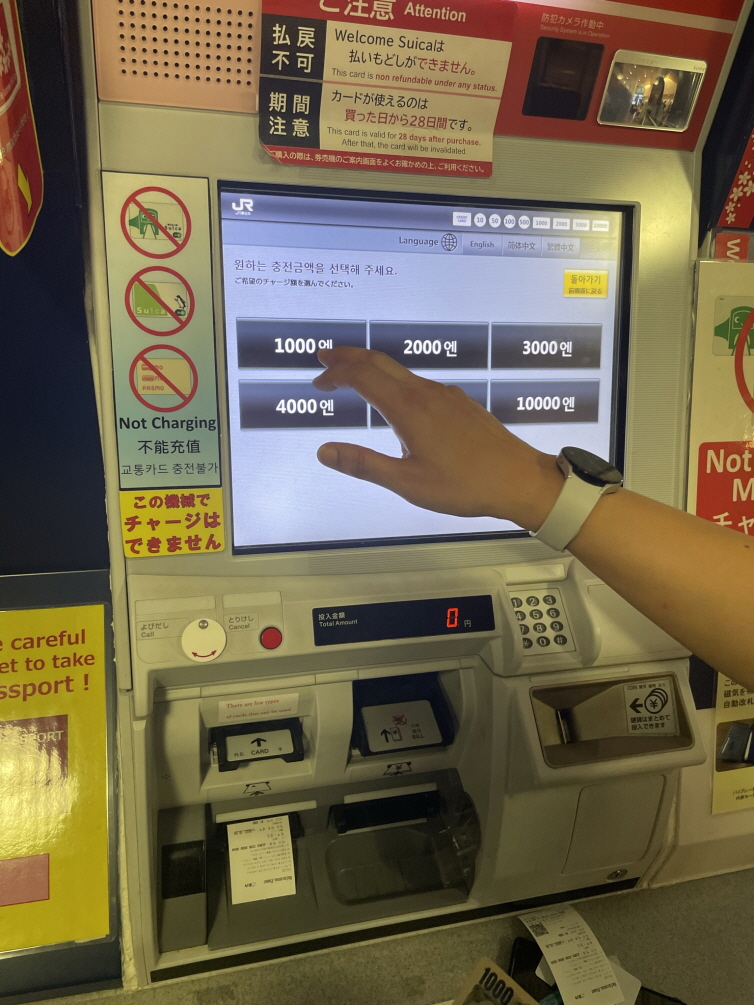 3. 카드에 넣을 충전 금액을 입력합니다. 1000엔만 넣고 나중에 잔액이 부족하면 다시 충전하면 됩니다.