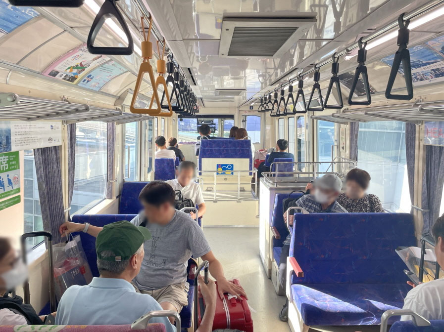 에스컬레이터를 타고 올라가면 열차에 승차합니다. 창밖으로 시내가 한눈에 보입니다.