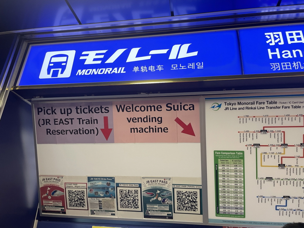하네다 공항에서 모노레일을 타려면 먼저 웰컴 스이카라고 하는 교통카드를 만들어야 합니다.