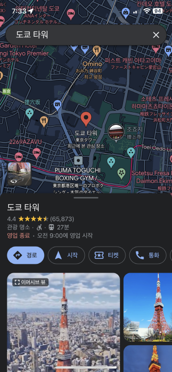 도쿄타워를 검색해 보겠습니다.