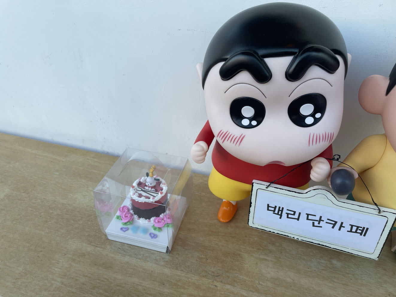 귀여운 짱구 캐릭터가 지나가는 손님들을 끌어모으네요.