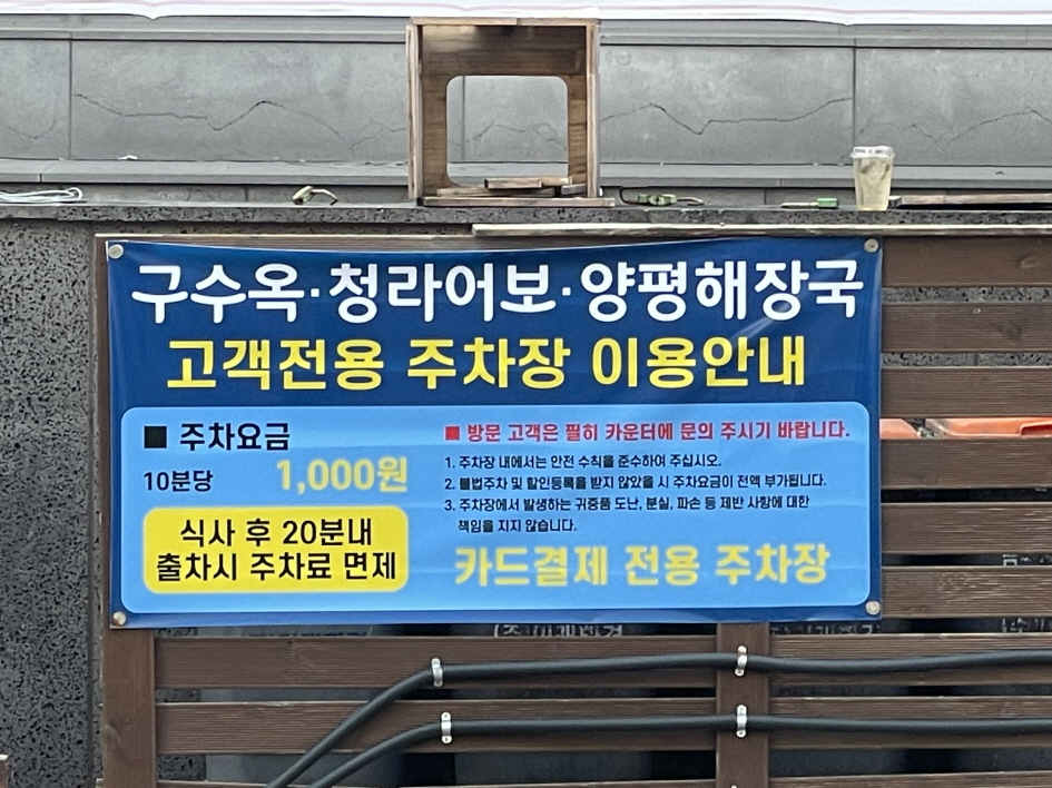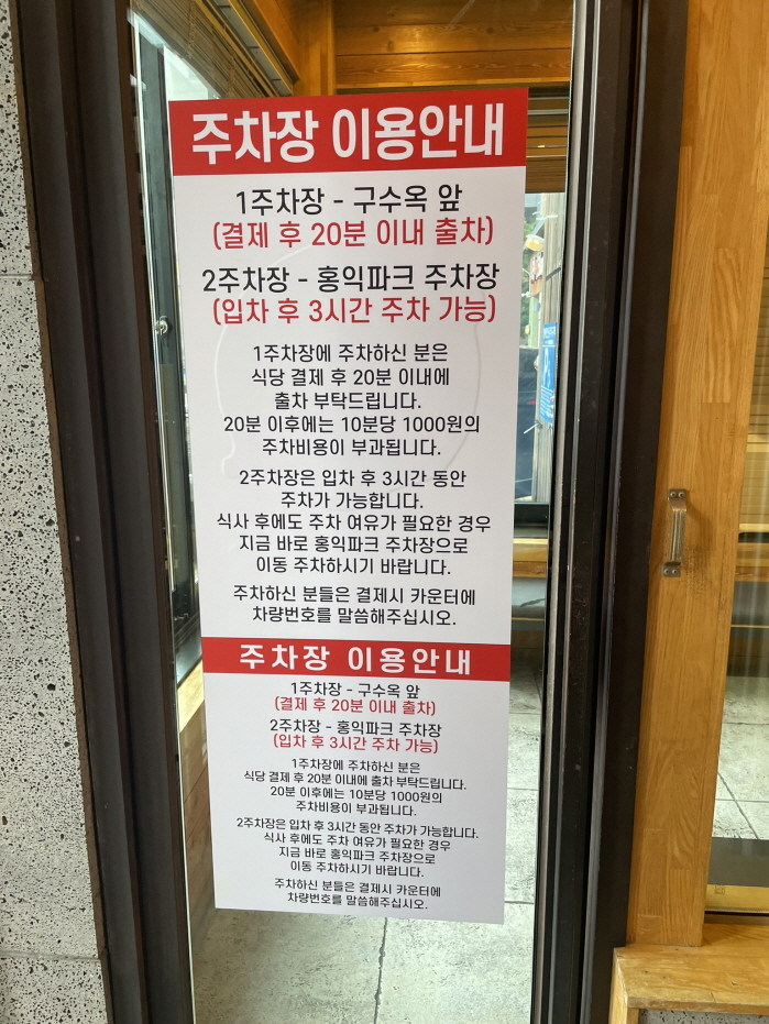 주차 요금은 10분당 1000원이지만 식사손님은 식사 후 카운터에 주차 확인 받으시면 무료 주차 입니다. 확인 후 20분 안에 출하해야 해요.