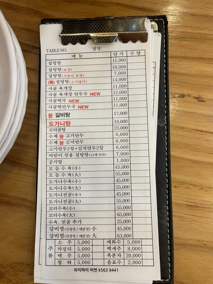 설렁탕 11,000원(포장-10,000원, 국물만 포장-7,000원)