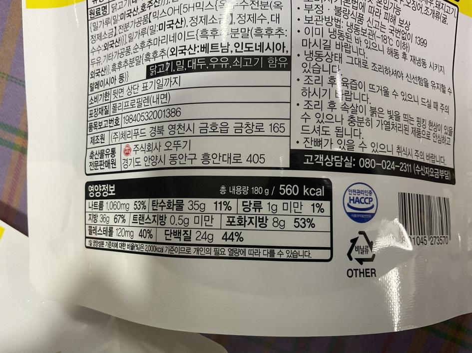 이미 잘 알려진 오뚜기 순후추치킨입니다.