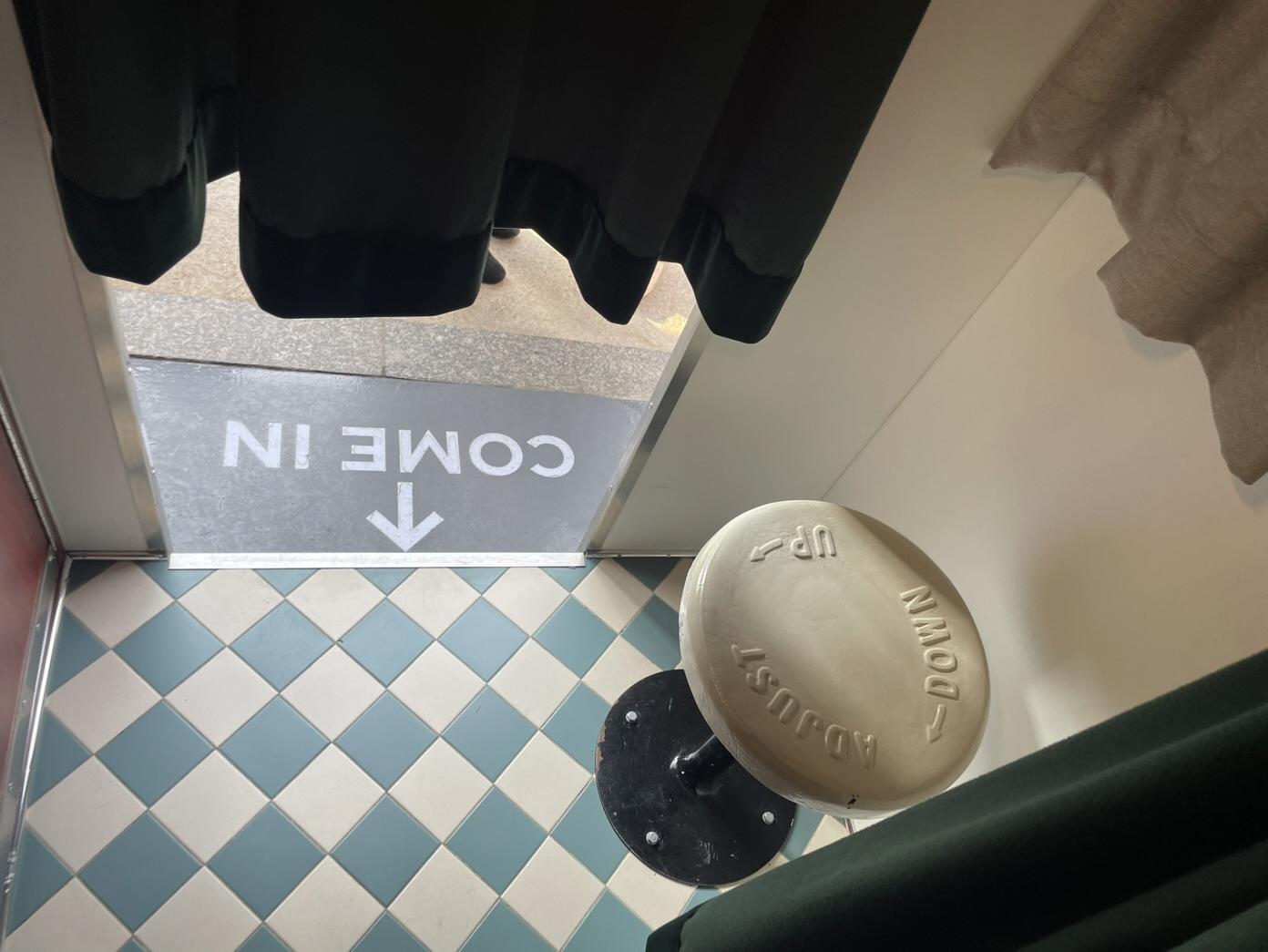 사진부스 실내가 좁아요. 한 명이나 두 명까지는 같이 들어가서 사진 찍어도 돼요.