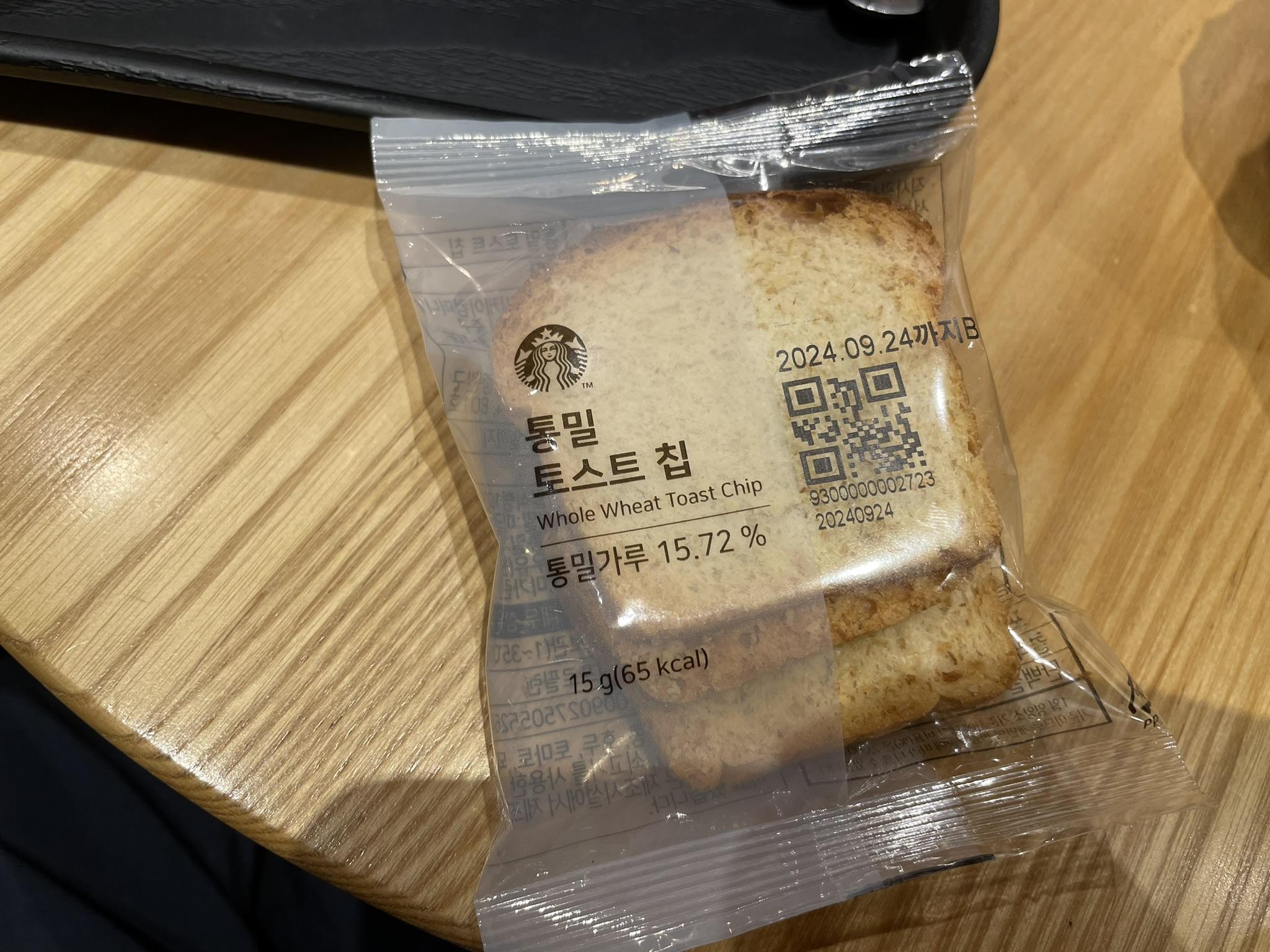 식빵을 구운 것처럼 보이는데 바삭하네요. 맛은 바삭하고 딱딱하지 않은 바게트 맛하고 비슷해요.