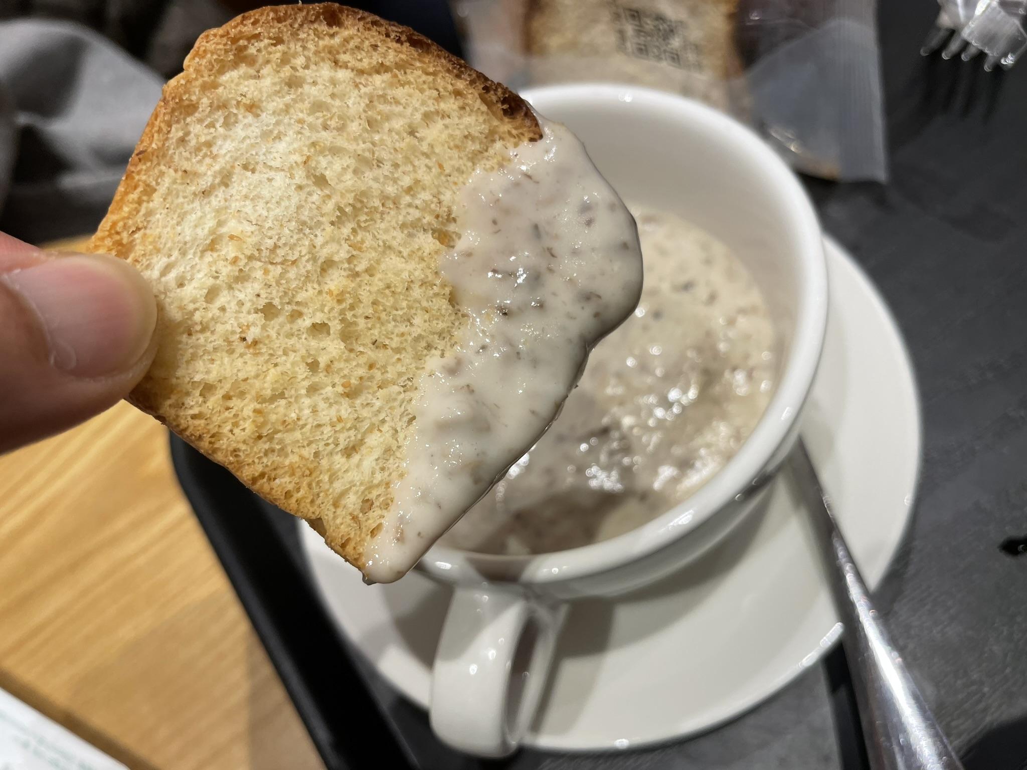 수프에 찍어 먹으면 고소하고 부드러운 맛을 함께 즐길 수 있어요.