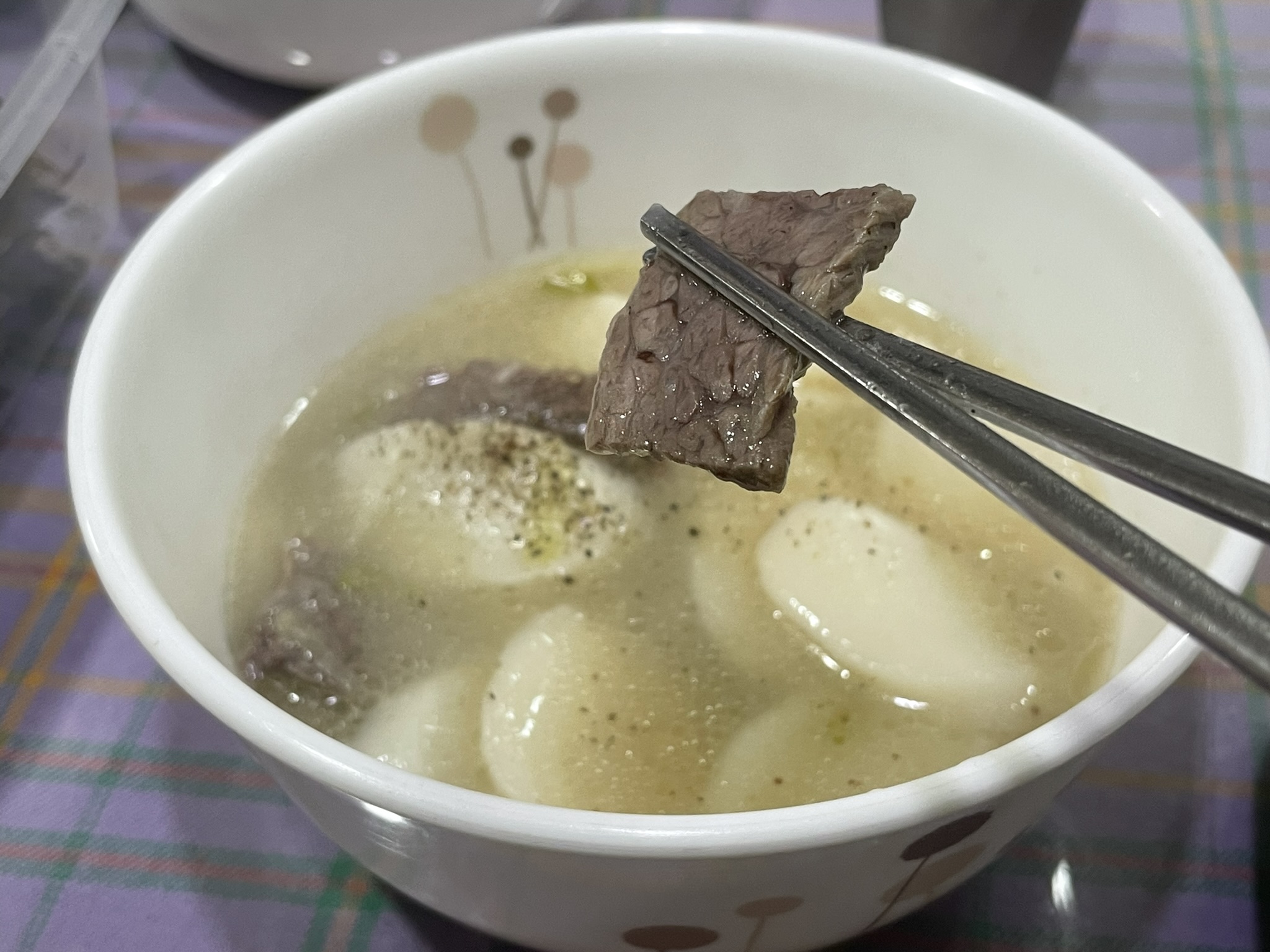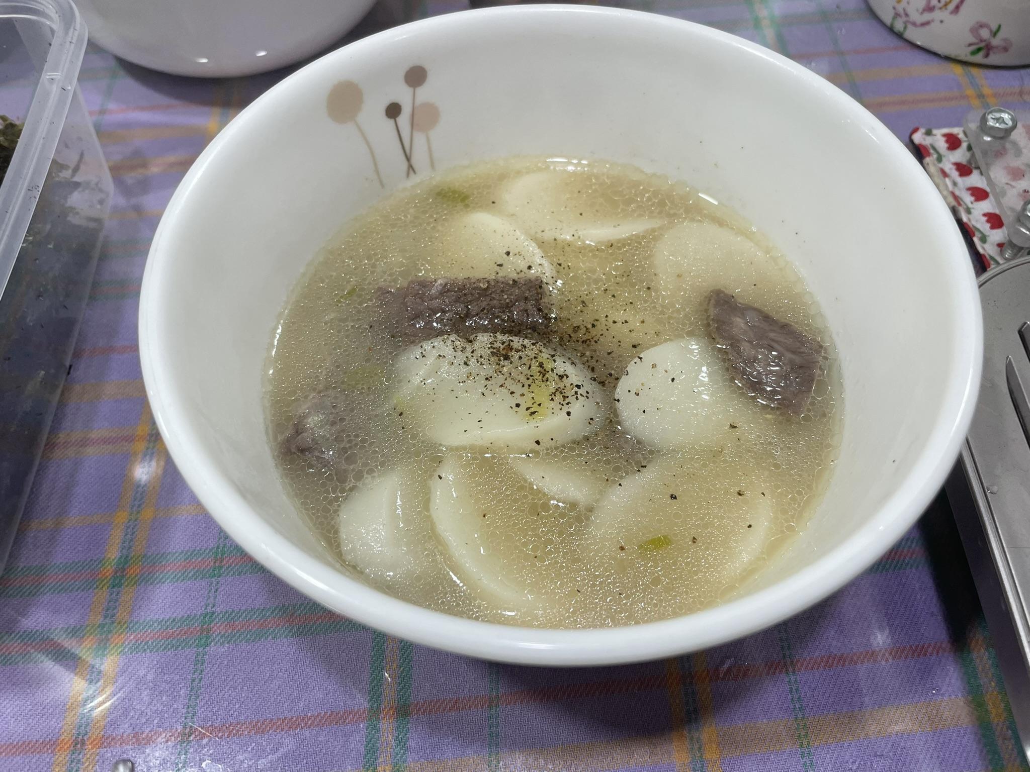 아롱사태와 양지로 육수를 내서 떡국을 끓였어요
