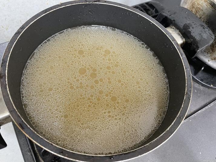 6. 육수에 끓였던 모든 재료를 건져서 버립니다.