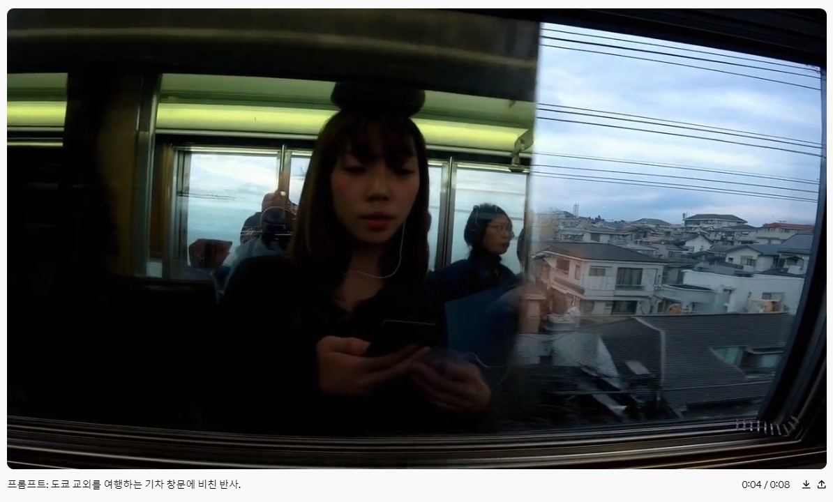 다음 영상은 전철을 타고 있는 여성의 시점에서 창밖을 보고 있는 영상입니다.
