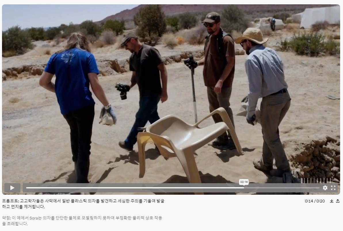 하지만 모델에는 약점이 있다고 합니다. 복잡한 장면의 물리학을 정확하게 시뮬레이션 하는데 어려움을 겪을 수 있으며, 원인과 결과의 특정 사례를 이해하지 못할 수도 있다고 합니다.
