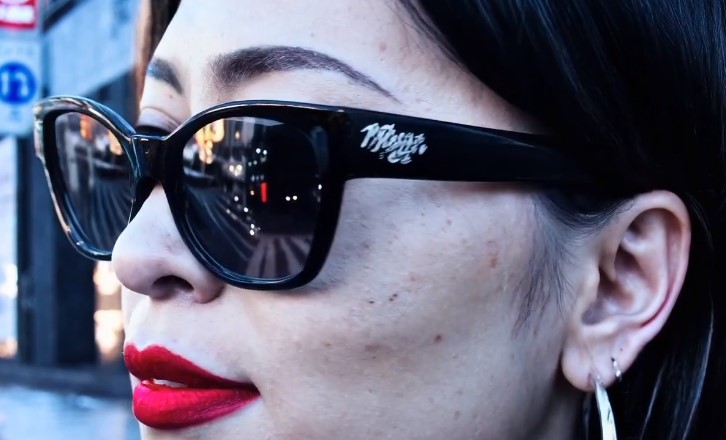 자세히 보면 선글라스의 로고도 자세히 표현하였고요. 안경에 비친 거리모습도 현실적으로 표현되어 있어요.