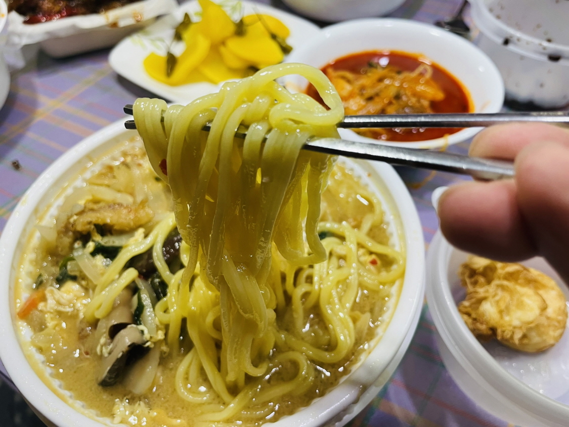 백짬뽕 맛있는데 집에 오면서 좀 식었어요. 좀 더 따뜻했으면 더 맛있었을 것 같아요.