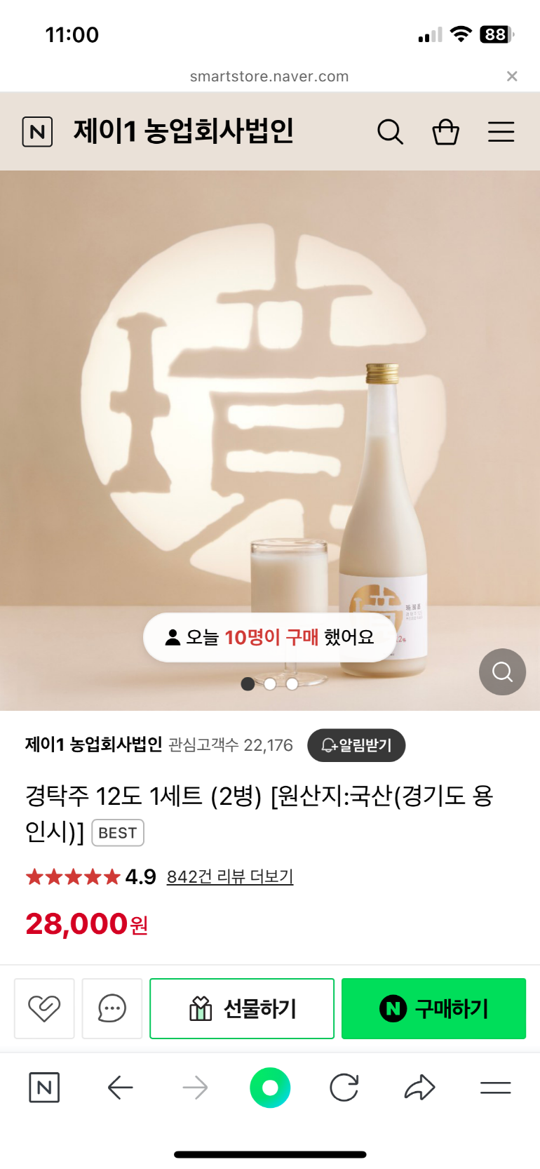 경탁주는 한정 생산 상품이고, 매일 오전 11시에만 판매사이트 오픈됩니다.