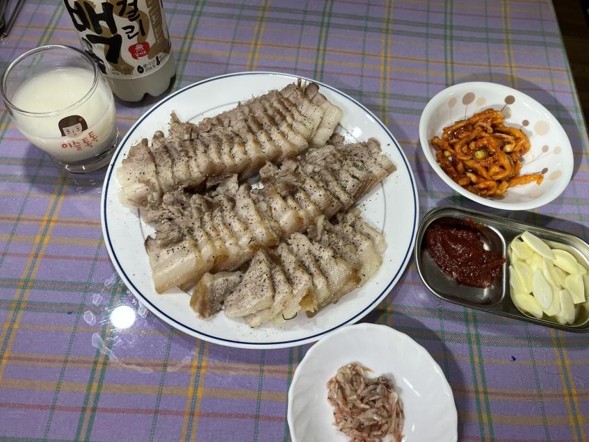 막걸리에는 수육이죠.