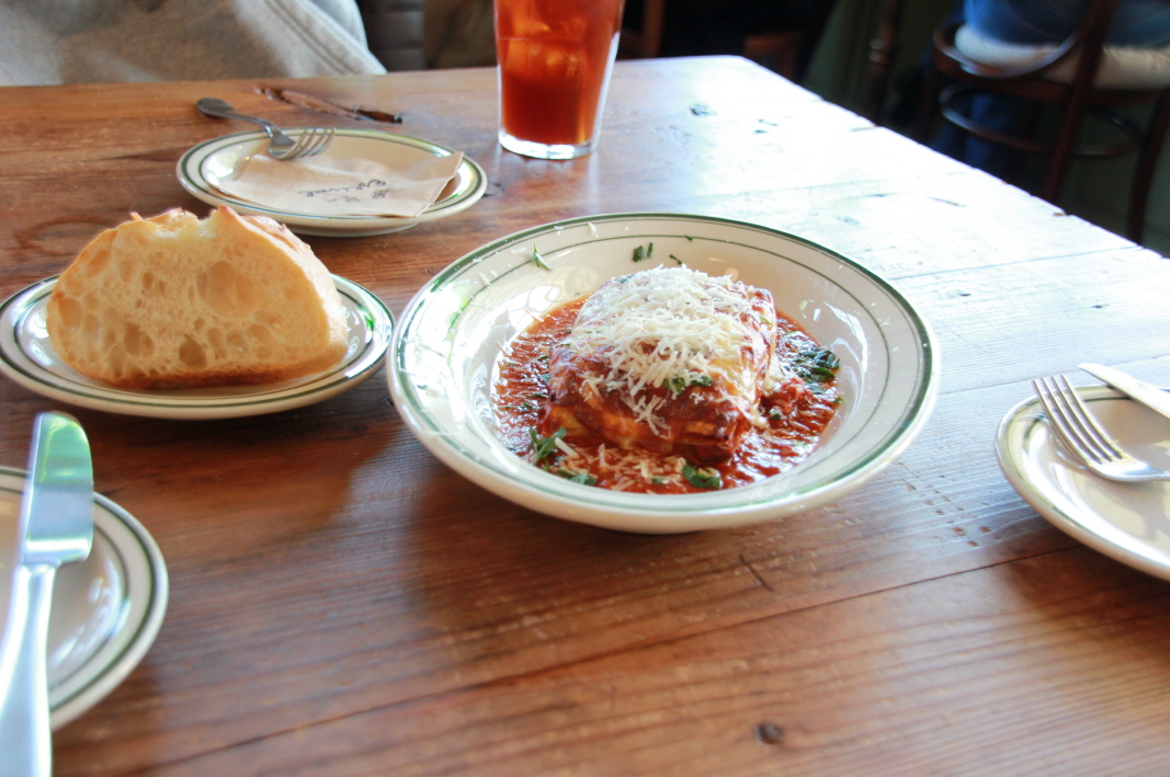 저희는 라자냐와 커피와 차를 마시고 왔어요.