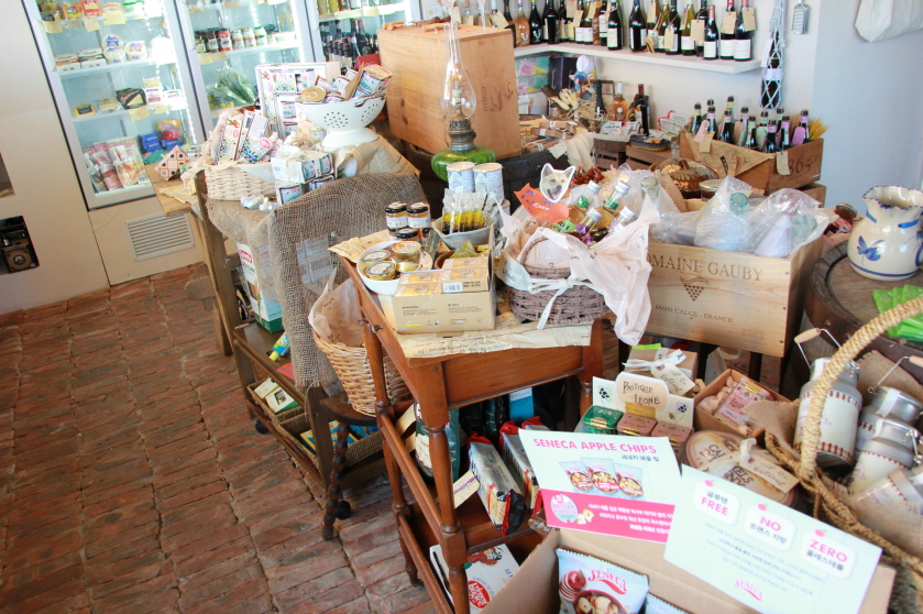 출입문으로 들어가면 유럽의 식료품점을 연상하게 하는데요. 다양하고 재미있는 주류와 식료품들을 판매하고 있어요.