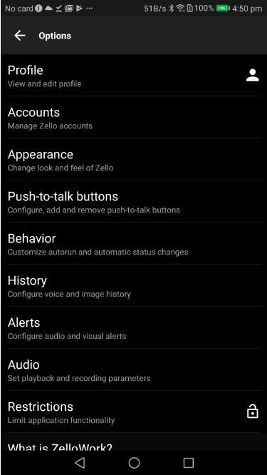 참고: 무료 소비자 앱이 아닌 ZelloWork를 사용하는 경우 ZelloWork를 선택해야 합니다. Zello Work에 대한 사용자 가이드는 Zello Work Support에 있습니다.(별도자료)