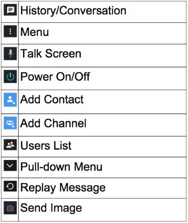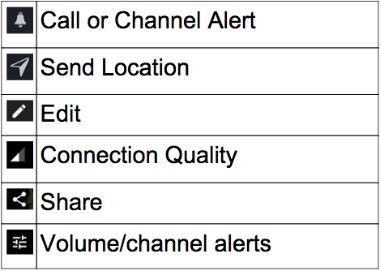 다음 아이콘은 Zello 사용자 인터페이스 전체에서 사용됩니다. 이 범례는 각 아이콘의 의미를 설명합니다.